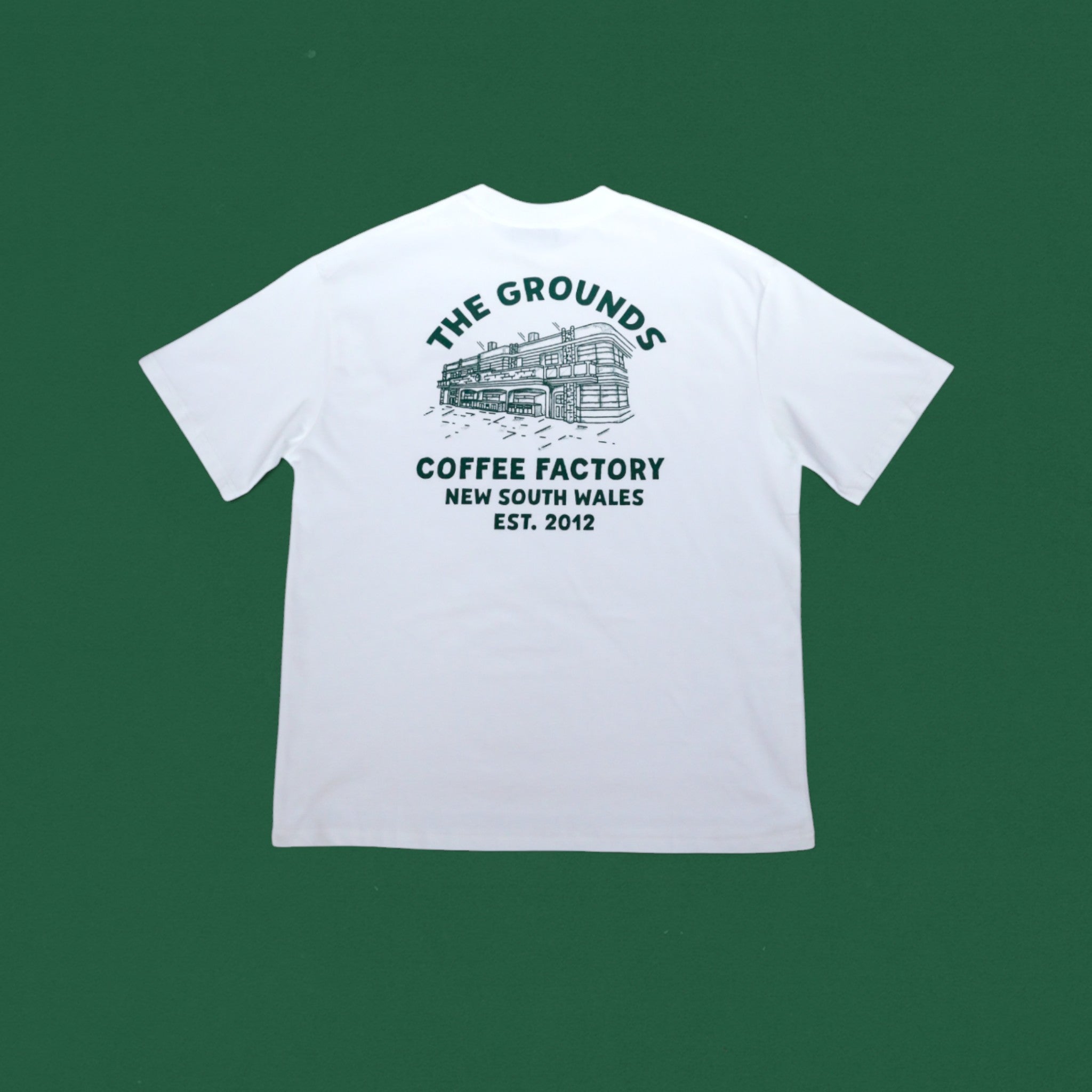 This crew neck cotton tee is an architectural homage to our home in South Eveleigh. It celebrates the physical space where our community gathers, The Grounds Coffee Factory. Featuring a detailed line-drawing of the Locomotive inspired facade, this piece captures the industrial charm and established history of the historic Locomotive Workshops that inspired our fantastical venue.