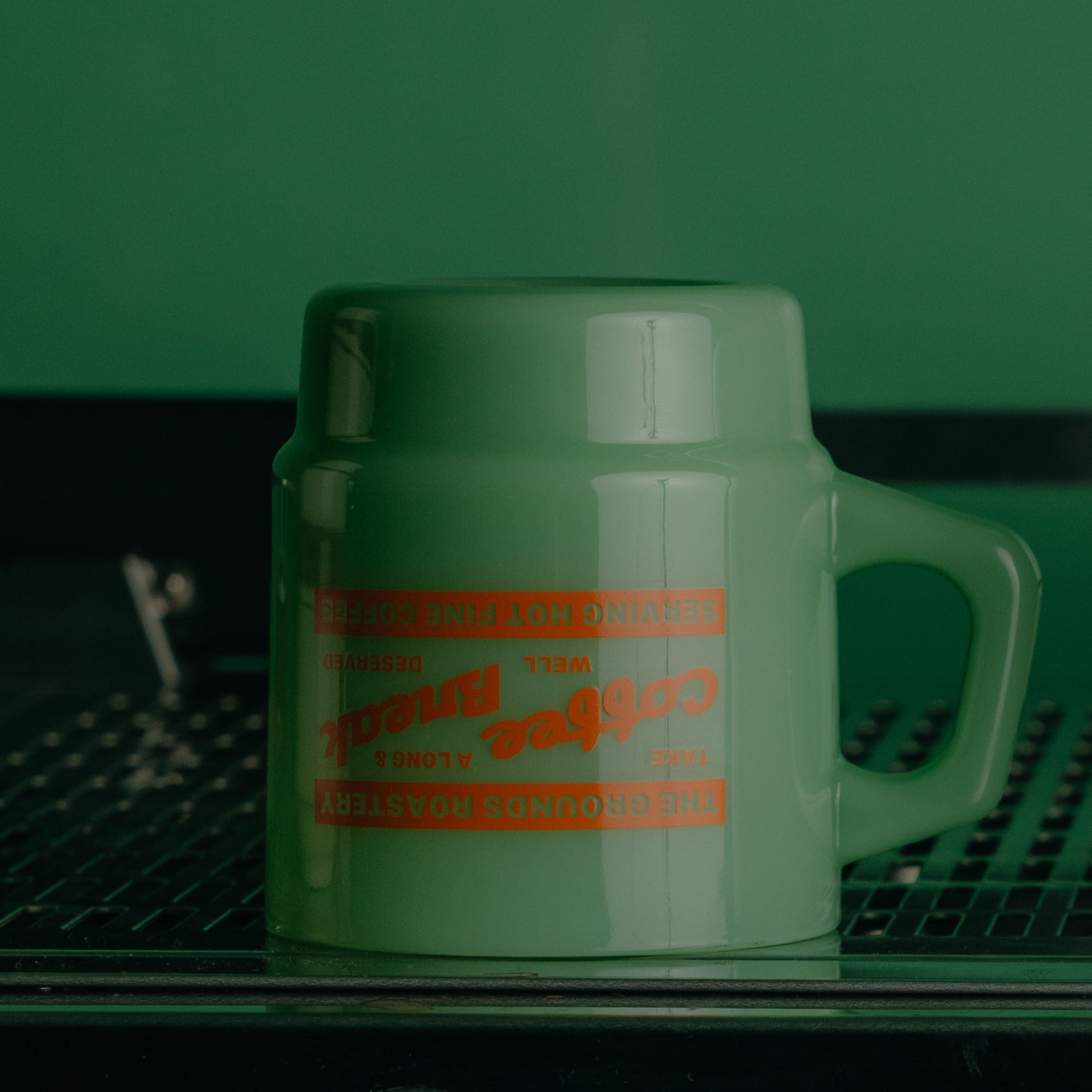 A nod to vintage diner charm, this 200ml cup is made from durable milk glass in a soft mint green. Featuring a retro silhouette and logo, it’s designed to stack neatly and bring a little nostalgia to your daily brew.